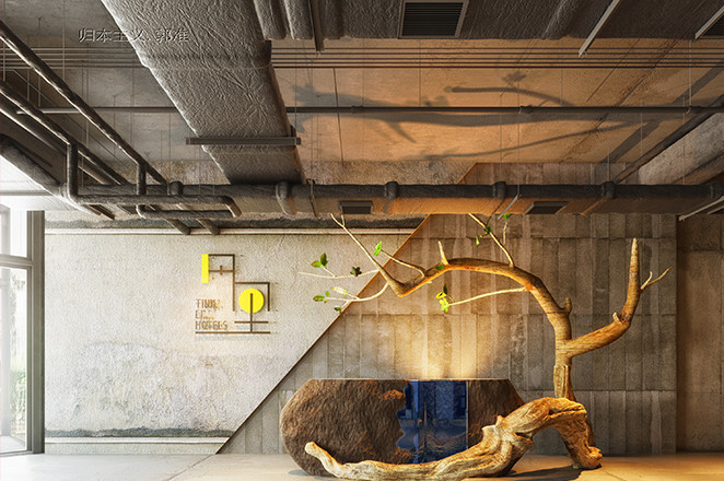 告别传统的设计,采用石头、绿植进行装饰,露的石头既可以铺砌在地面充当台阶,又可以参差不齐的镶嵌在墙壁充当装饰。绿植也在光影的变幻间转变角色,既是空间装饰,又是隐蔽隔断。